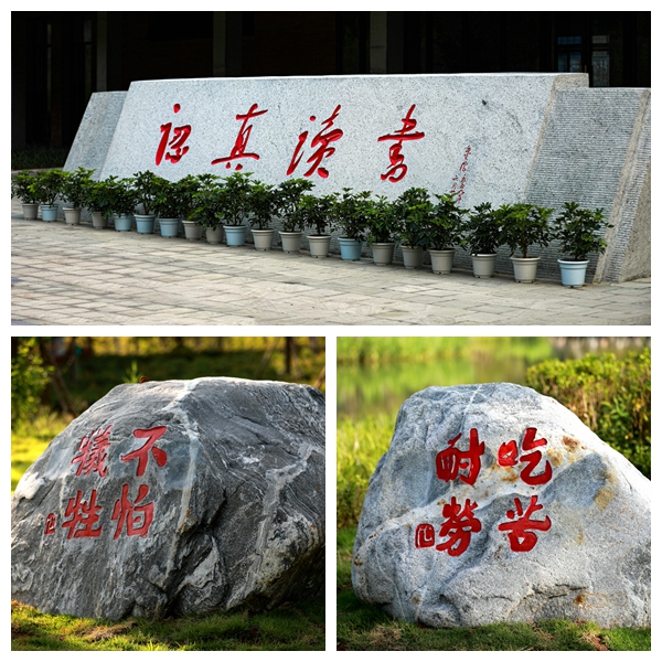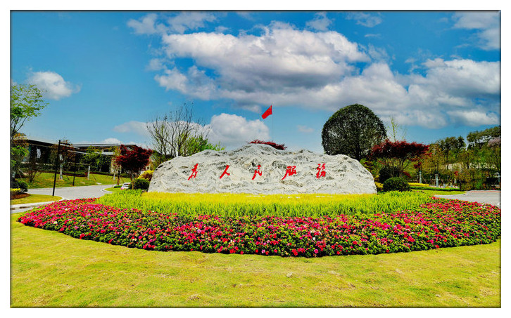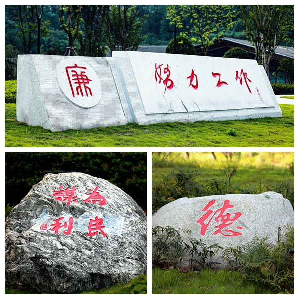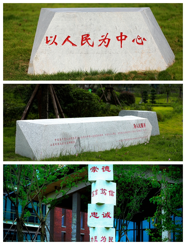 本网讯(范红英/文图)近日,笔者走进四川张思德干部学院校园,首先映入眼帘的是毛主席“为人民服务”五个大字的题词塑石。蓝天白云下,五星红旗在风中飘扬,宗旨广场显得格外庄严、肃穆。走过一段绿荫小道,“崇德、笃信、忠诚、为民”院训矗立在行政楼前。漫步校园,“以人民为中心”、“认真读书”、“努力工作”、“为人民服务”等各种红色文化石刻错落有致地分布在校园,一股浓厚的校园文化气息迎面扑来……