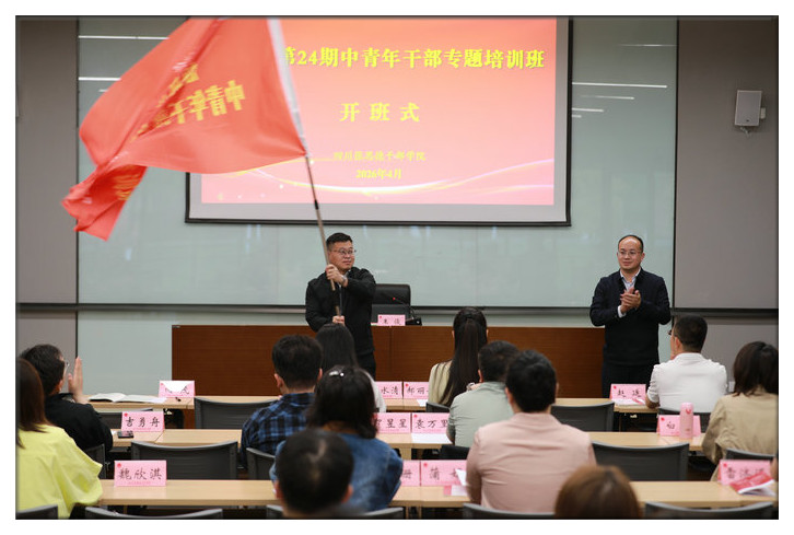开班式上,四川张思德干部学院院务委员、中共仪陇县委组织部副部长、县委党校常务副校长王俊向全体学员介绍了四川张思德干部学院的发展历程及办学成效并为培训班授班旗。