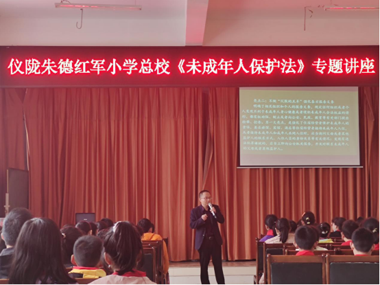 在仪陇朱德红军小学总校的报告厅,思德公益服务队的吴林艳老师为学生讲述《未成年保护法》,向学生普及法律知识的同时勉励学生努力学习雷锋精神、张思德精神,以后更好的为建设祖国、建设家乡而努力奋斗。同学们纷纷表示学到了很多东西,收获很大。