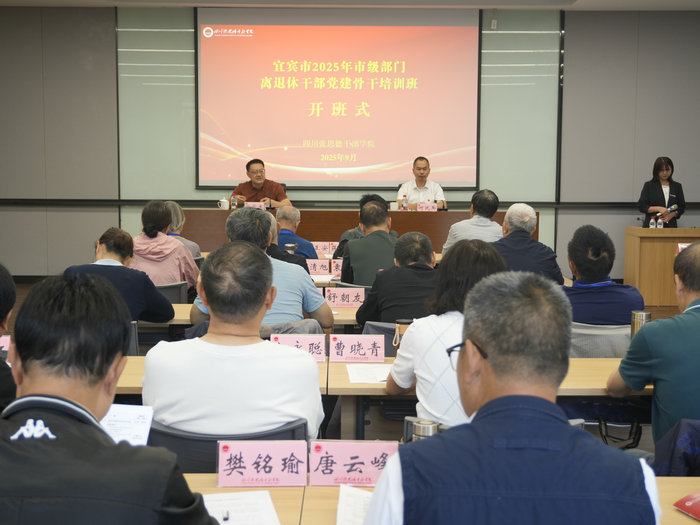 本网讯(周杰/文图)9月23日,宜宾市2025年市级部门离退休干部党建骨干培训班在我院开班。宜宾市委老干部局副局长杨家木出席开班式并作动员讲话,中共南充市委党校副校长、四川张思德干部学院副院长何兆兵出席开班式。