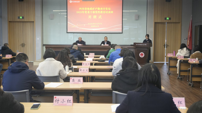 本网讯(周杰/文图)11月17日,四川省地质矿产勘查开发局2025年党务干部党性教育培训班在四川张思德干部学院开班。四川省地质矿产勘查开发局党委副书记、机关党委书记周冰出席开班式并作动员讲话,中共南充市委党校副校长、四川张思德干部学院副院长何兆兵介绍了学院办学特色,并对《干部教育培训学员管理规定》进行了详细解读。