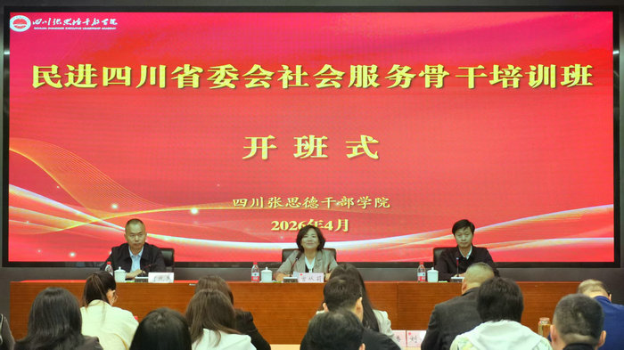 本网讯(江杰/图文)为深入贯彻落实民进中央和省委工作要求,2026年4月20日,民进四川省委会社会服务骨干培训班在四川张思德干部学院开班。民进四川省委会秘书长曾从莉作动员讲话,南充市政协副主席、民进南充市委会主委黄祖军出席开班式,中共南充市委党校副校长、四川张思德干部学院副院长何兆兵致欢迎辞。