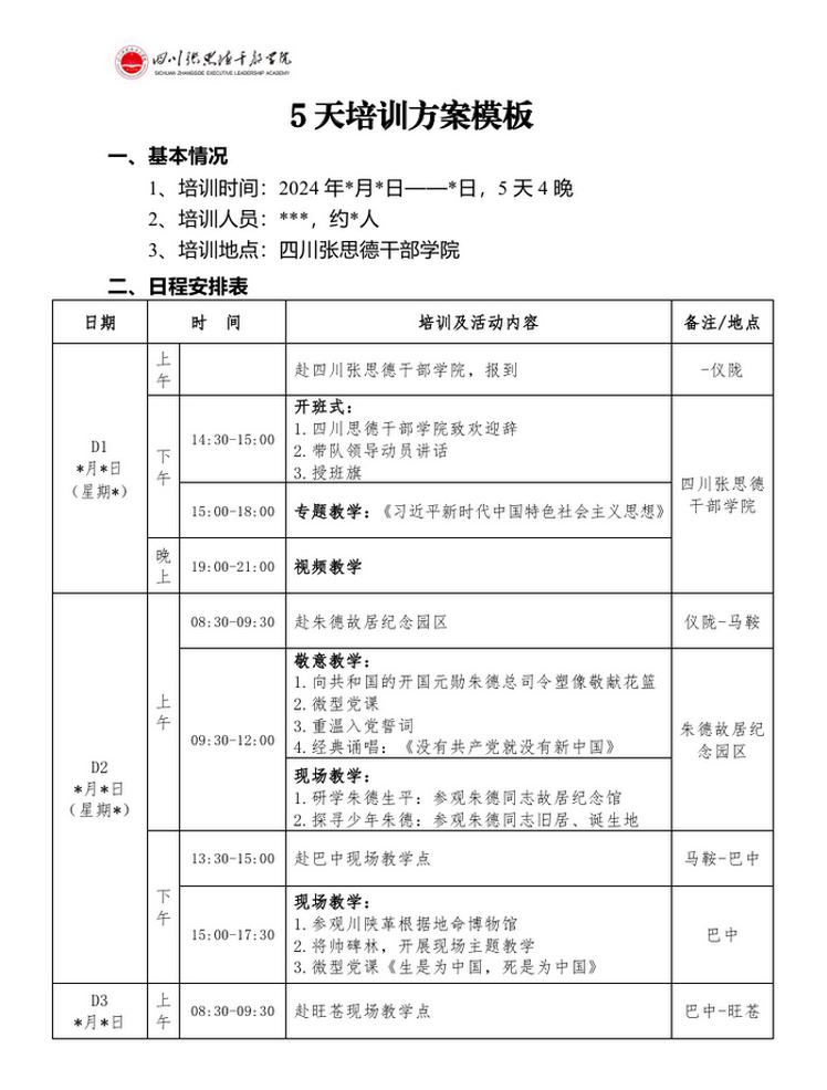 四川思德干部学院五天培训日程